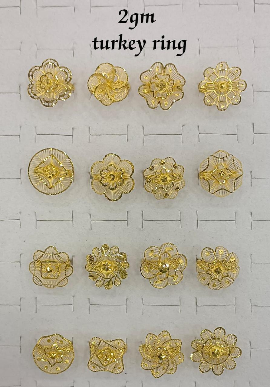 Lightweight 2gm turkey ring collection featuring assorted floral and traditional motifs.