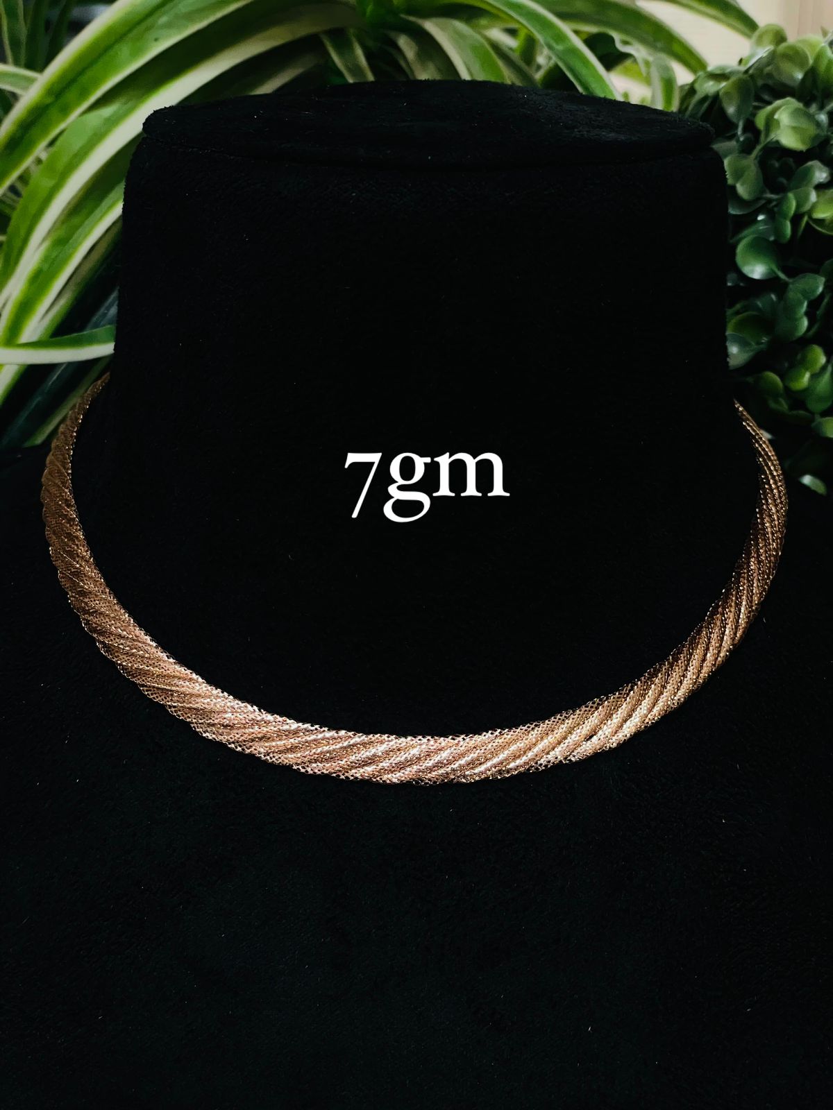A beautifully designed gold necklace featuring an elegant twisted rope pattern that gives it a rich and stylish look. Its bold texture and refined finish make it perfect for festive occasions as well as adding a luxurious touch to everyday wear.