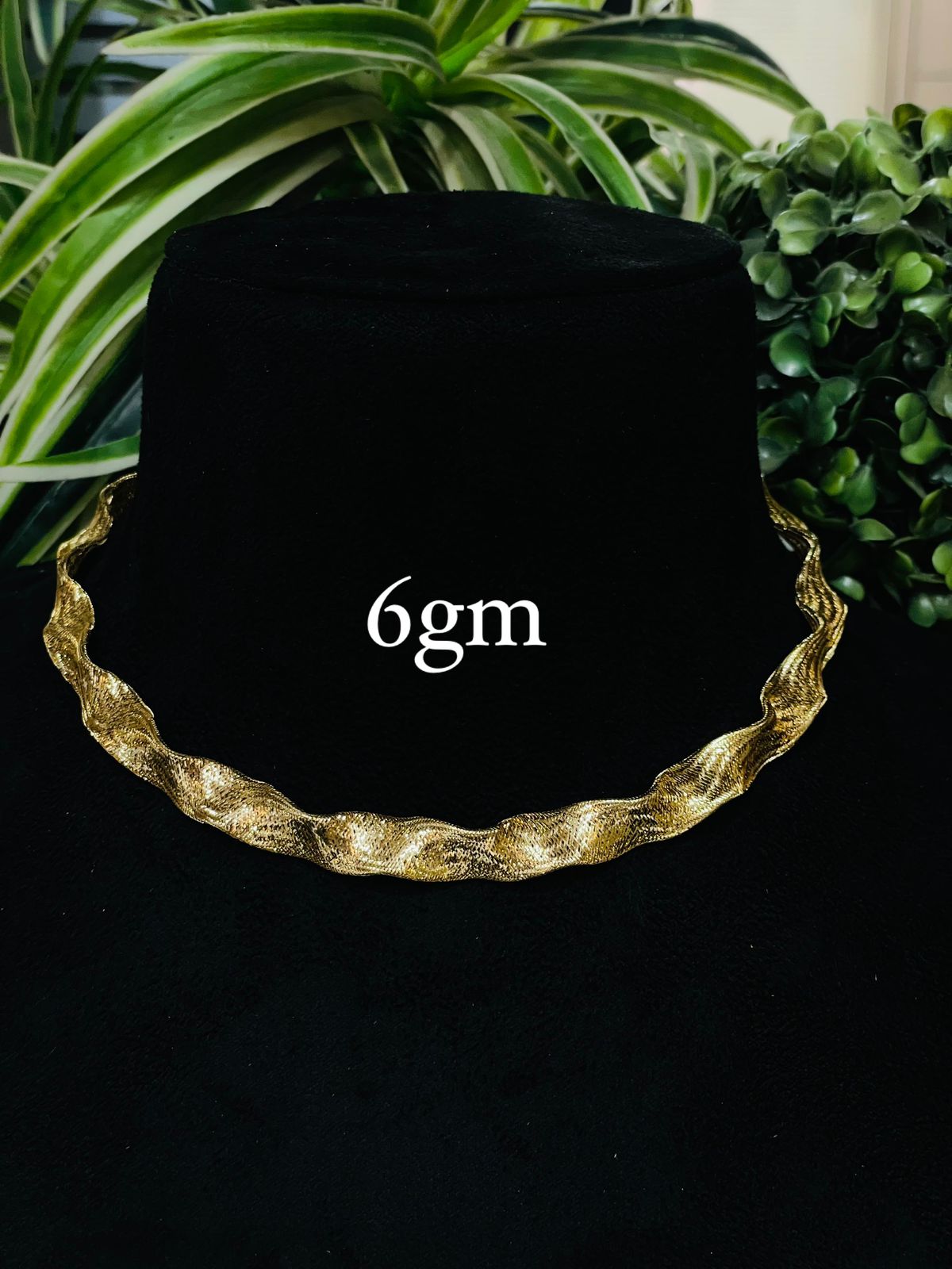 A beautifully crafted gold chain featuring a bold wavy textured design that gives it a rich and stylish look. Its unique pattern and elegant finish make it perfect for both everyday wear and special occasions, adding a touch of modern luxury to your style.