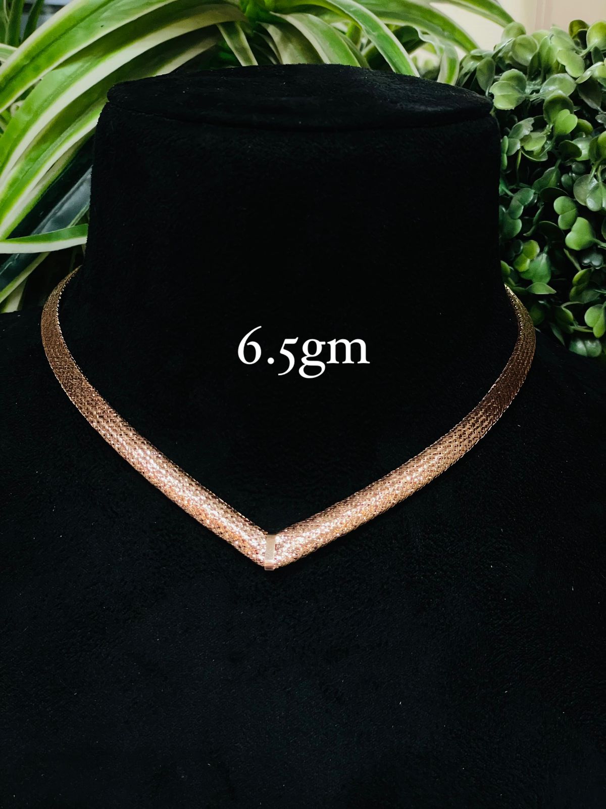 A beautifully crafted gold necklace featuring a sleek V-shape design with a rich textured finish. Its modern and elegant style makes it perfect for both everyday wear and special occasions, adding a refined and luxurious touch to your look.